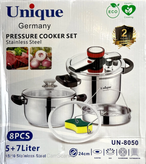 پلوپز دو قلو یونیک 8 پارچه 5 و 7 لیتر استیل لیسانس آلمان مدل UNIQUE UN-8050