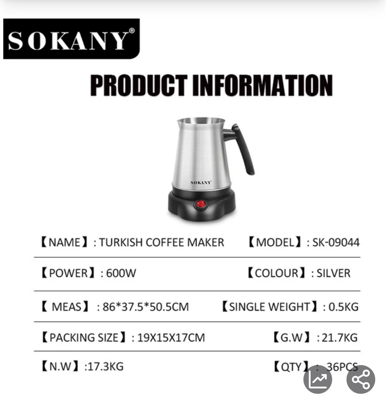 دستهبندی: قهوه سازبرچسبها : قهوه ساز، ترکی، سوکانیتوان دستگاه: ۶۰۰ واتظرفیت مخزن: ۸۰۰ میلجنس بدنه: تمام استیلچراغ نشانگر: دارد✅
