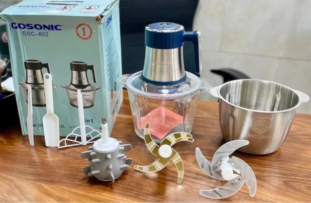 خردکن دو کاسه گوسونیک- ۶+۴ تیغه تیتانیوم طلایی همراه با سیر پوست کن همزن و کاردک - 3 کاره- قدرت 3500 وات مدل GSC-803