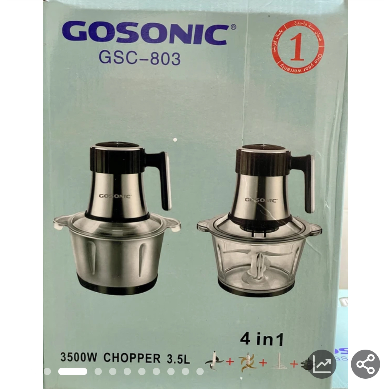 خردکن گوسونیک مدل GSC -803 یک دستگاه خردکن خانگی با طراحی مدرن و کاربردی است. این خردکن دارای ظرف شیشه ای با گنجایش 3.5 لیتر است که ظرفیت مناسبی برای خرد کردن انواع مواد غذایی دارد. موتور قدرتمند 3500واتی این خردکن به راحتی می تواند مواد غذایی مختلف را خرد کند.