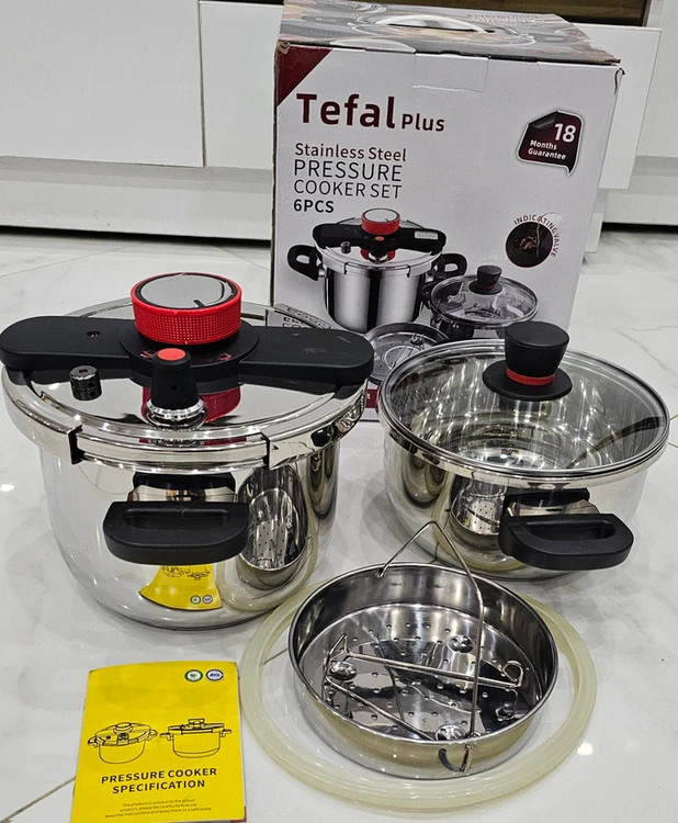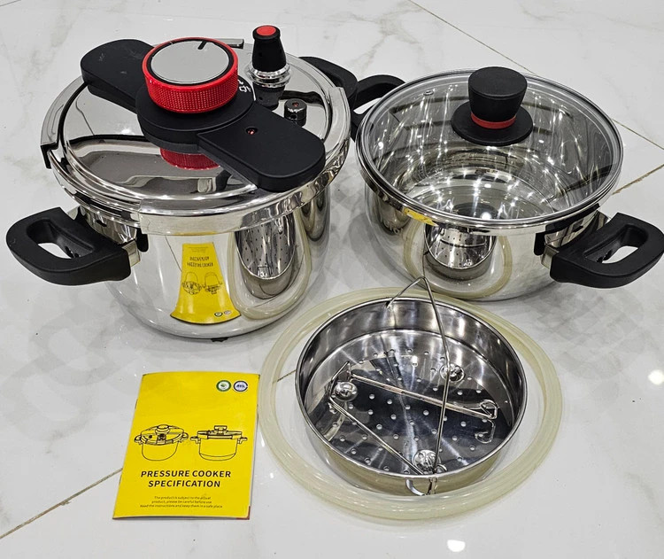دریچه اطمینان روی درپوش قرار دارد که زمانی که فشار آب به حدی می رسد که ظرف نمی تواند آن را تحمل کند این دریچه باز می شود تا بخار آب از آن خارج شود و این یعنی امنیت بالای زودپز.دستگیره های هر دو قابلمه از جنس باکالیت نسوز می باشد که قابلیت تحمل حرارت تا دمای 700 درجه را دارد.